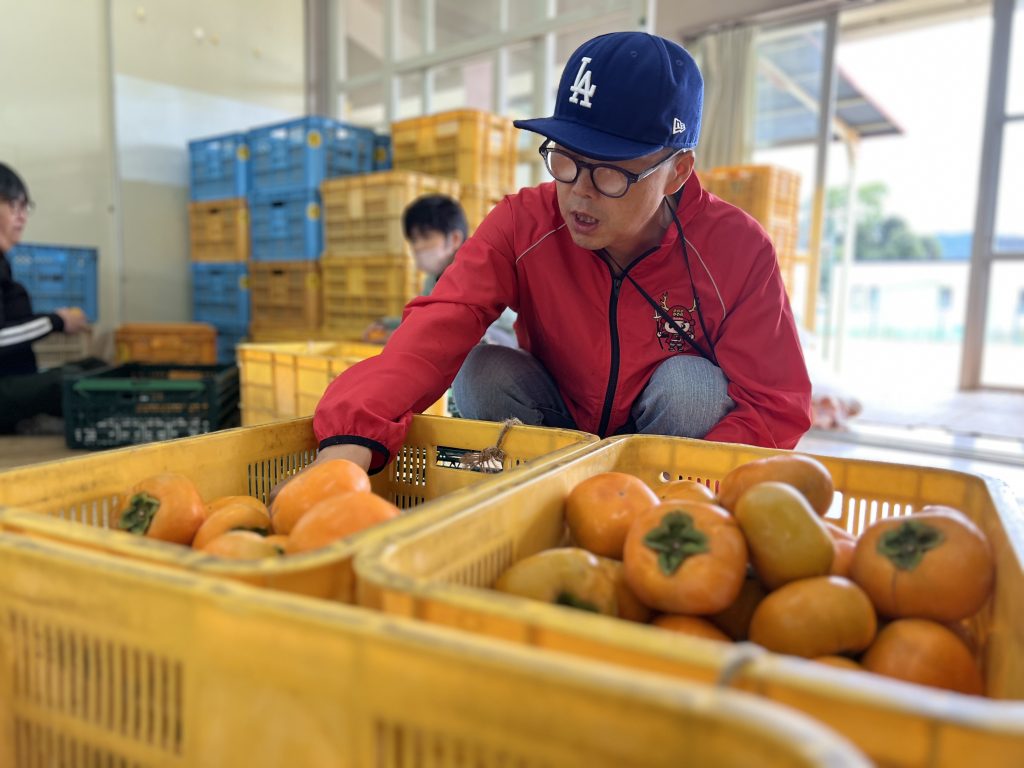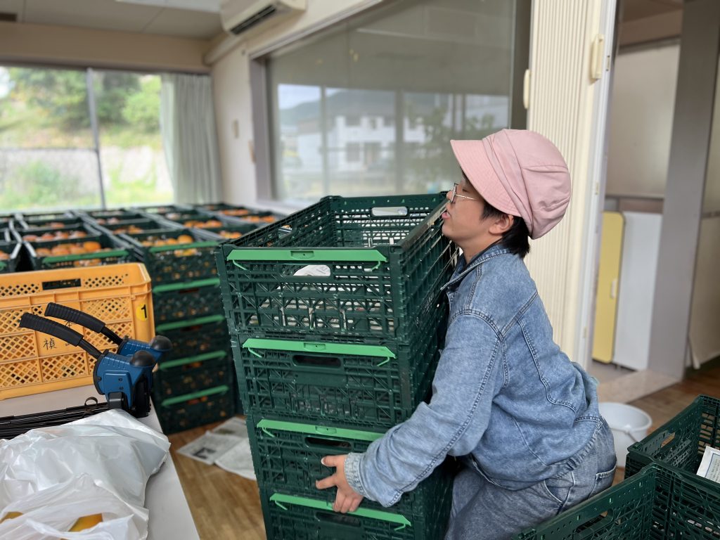 地域の農家さんの季節の果物・野菜の軽量、梱包作業